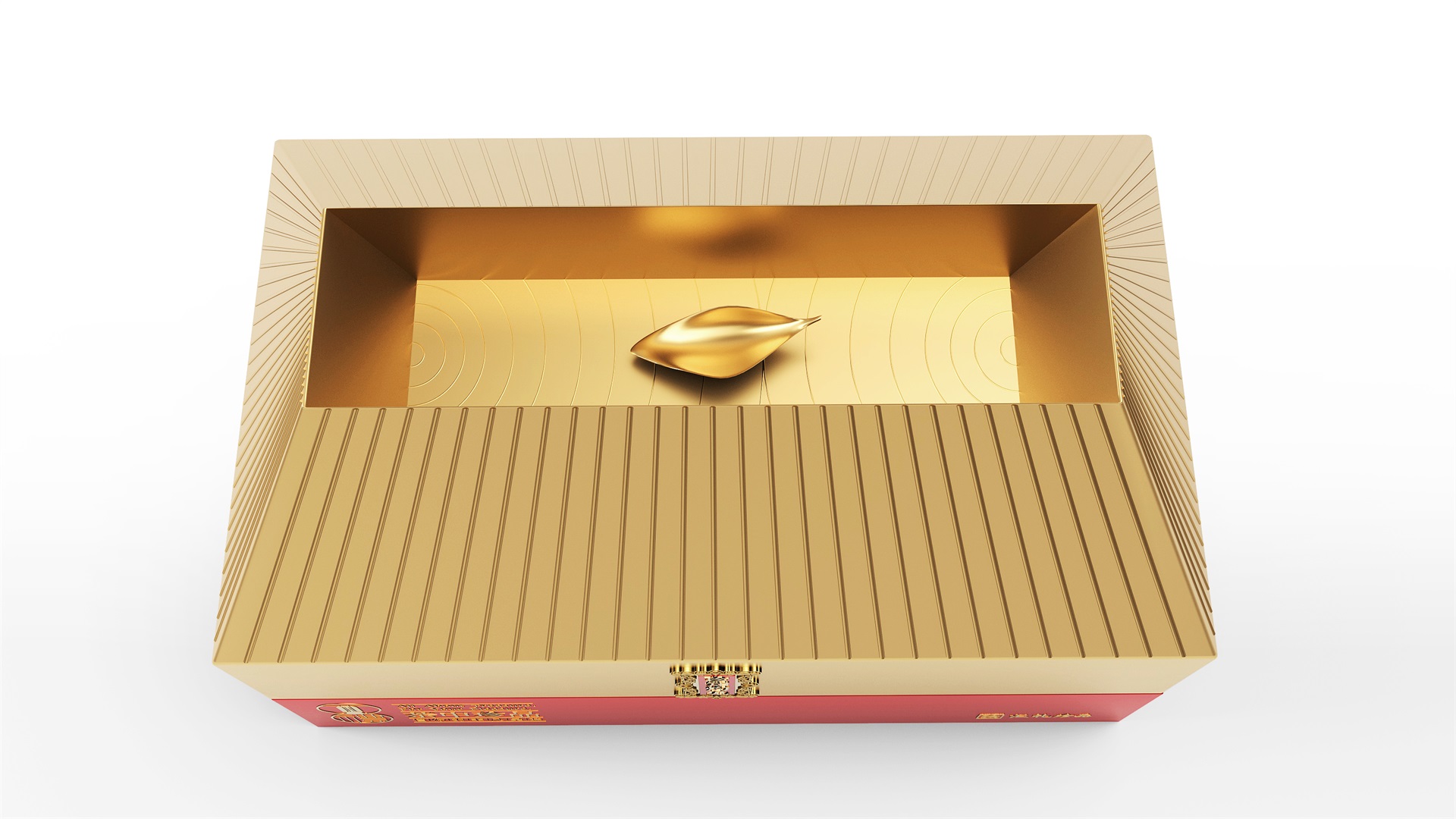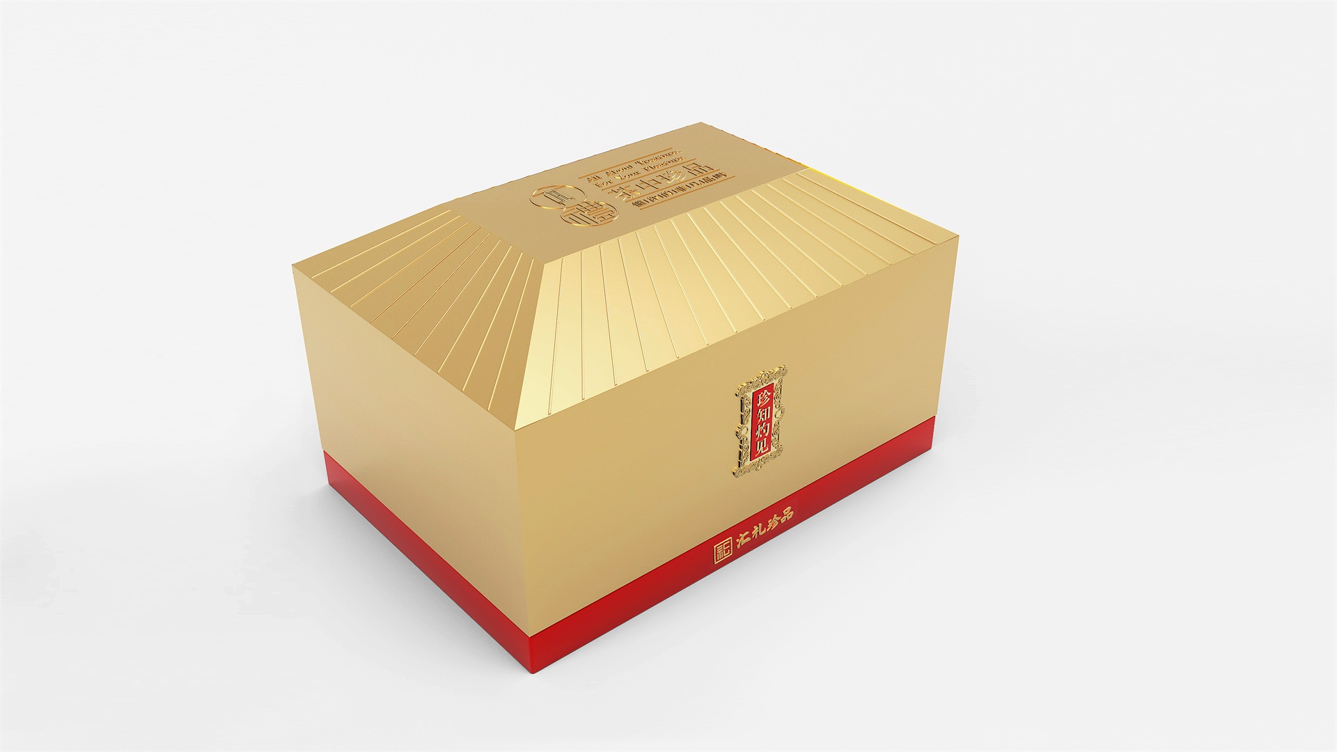 汇礼珍品包装设计,基于产品品级为茶中王者级别,J9九游会所以包装整体造型采用中国古代地位的皇家元素:宫殿为设计灵感进行设计,包装上盖为金色宫殿屋檐造型,斜面上也装饰了代表瓦片的条纹,上盖中部内陷,底部使用水纹铺底,在水纹上飘着一片金色的茶叶,高山流水觅知音,在一个上盖营造出了基于高端气质上,茶道与人道相融的意境画面;在上盖的正面中部,使用宫殿匾额形式作为展示包装的品类名称,将包装的宫殿造型进一步完善。支撑金色宫殿下方的红色地台作为包装下部,在正面放置文字信息和品牌标志。整体采用天地盖的形式,使开盖具备仪式感。内部分包装与外部形式大体相同,但有所以简略,保证整体性的同时也保证整体包装不会过于繁复,保持平衡。